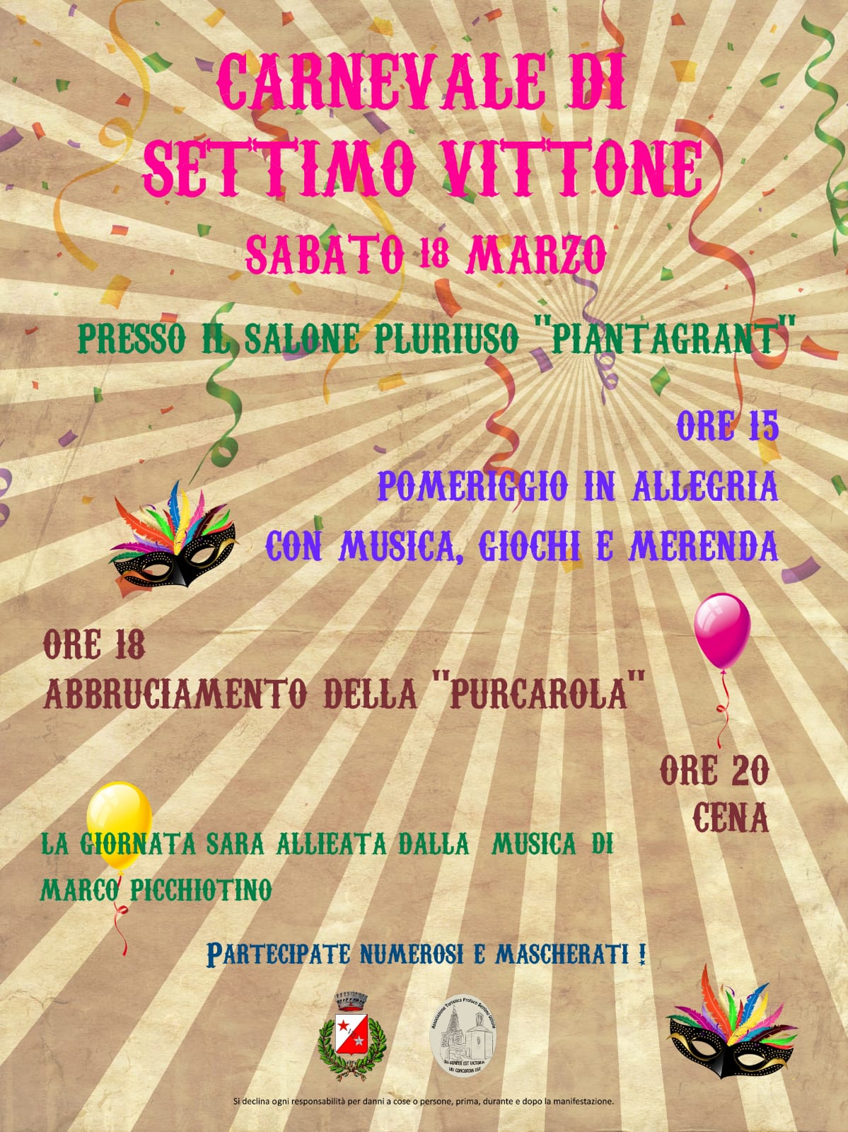 Sabato 18 Marzo presso il Salone pluriuso "Pinatagrant" alle ore 15:00.