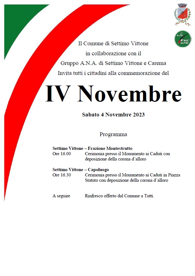 Ore 16.00 Cerimonia presso il Monumento ai Caduti con deposizione della corona d’alloro