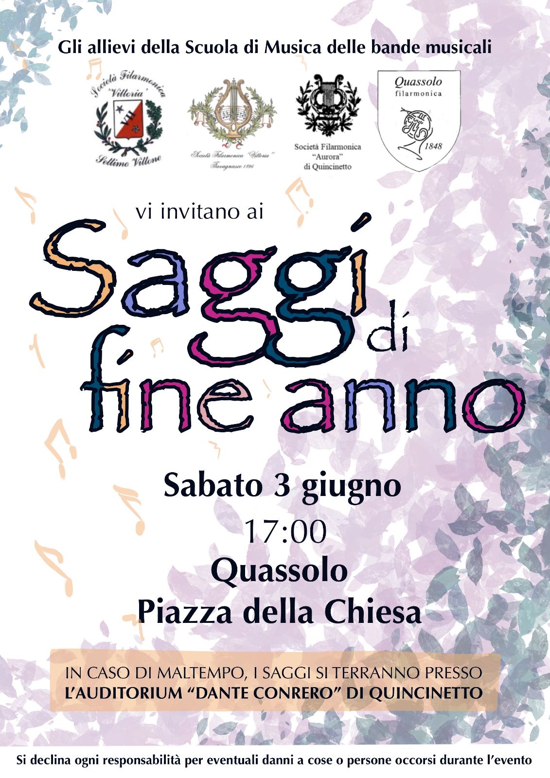 Gli allievi della Scuola di Musica delle bande musicali vi invitano ai Saggi di fine anno.