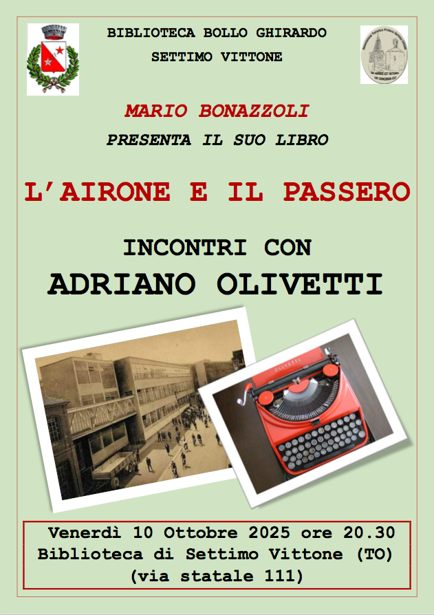 Mario Bonazzoli presenta il suo libro "L'airone e il passero" - incontri con Adriano Olivetti
