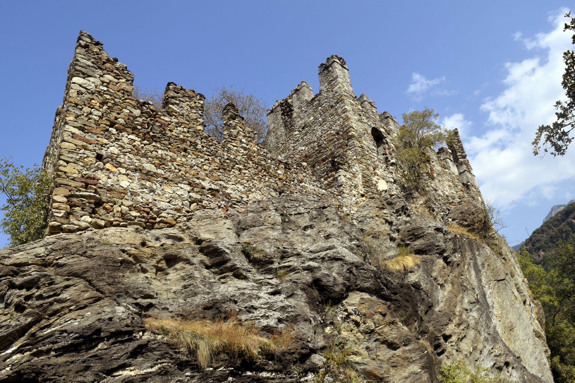 La cinta muraria esterna, più estesa, corre lungo il ciglio dello sperone roccioso per 175 metri: potrebbe esser stata aggiunta al castello insieme alla cappella e agli altri fabbricati, come rivelerebbero gli affreschi della cappella