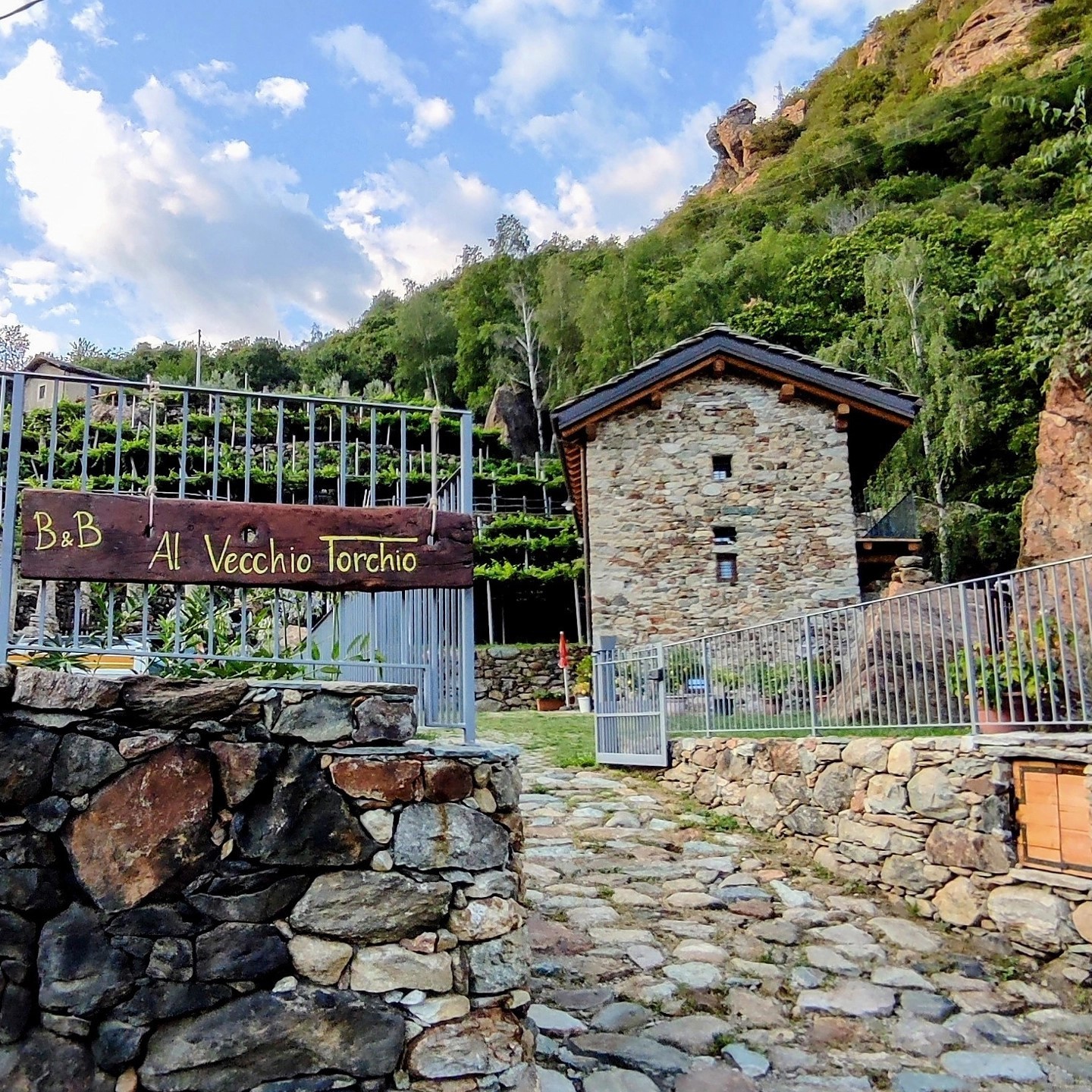 In un'antica struttura torchio per pigiatura uva in Fraz Torredaniele-Settimo Vittone(TO) tra vigneti e boschi. Raggiungibile da autostrada TO-AO e dalla statale in 10 min. Con la Via Francigena raggiungibili la Pieve di San Lorenzo e falesia La Turna.