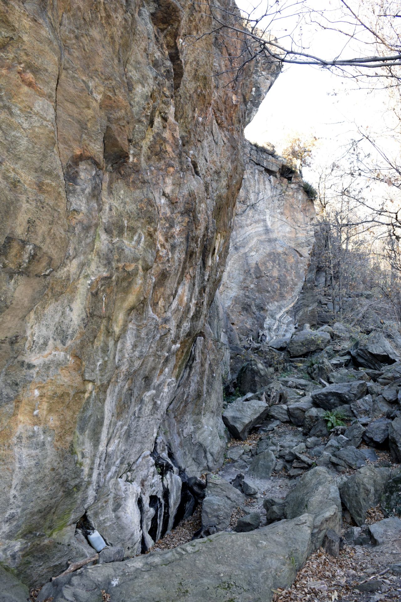 Dopo pochi minuti sulla destra si trova il settore 'Truna Basso' (4-5 vie più facili) esposto a SO. Continuare fin quasi al termine della valletta per il bel sentiero con gradini in pietra e legno e si arriva al settore principale 'Zampa' (esposto a NE) .